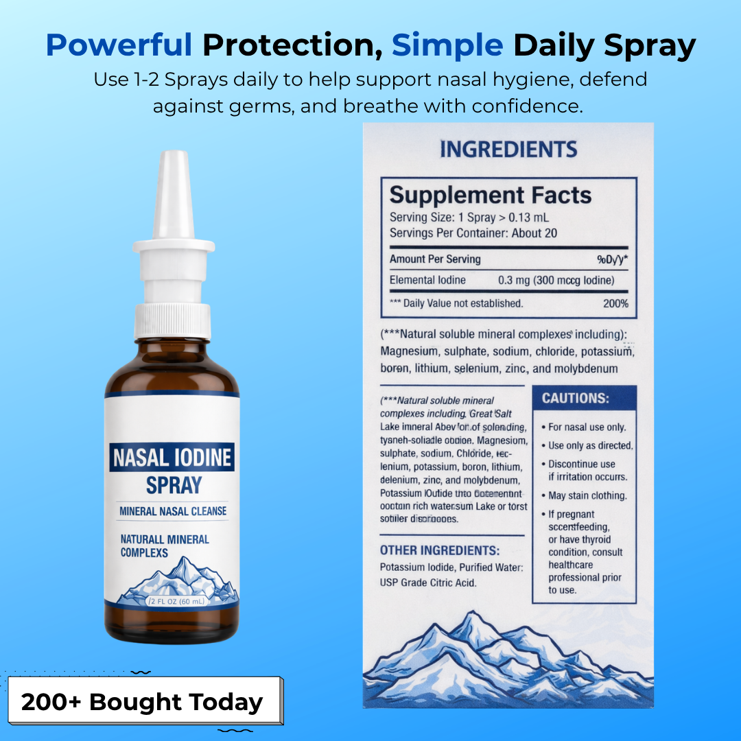 This nasal iodine spray helps support a cleaner, refreshed nasal environment as part of your daily wellness routine. Its mineral-based formula helps maintain nasal hygiene and promotes more comfortable breathing. With just a quick spray, it helps keep your nasal passages feeling fresh and clear throughout the day.